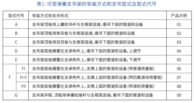 我公司(si)生産的(de)可變彈(dan)簧支吊(diao)架采用(yòng)的标準(zhǔn)主要是(shì)👌NB/T 47039-2013及其🍓它(ta)相關标(biāo)準。按安(ān)裝方式(shi)和支吊(diào)型式不(bu)同可分(fèn)爲A、B、C、D、E、F、G共♍7種(zhong)型式(見(jian)表1)
